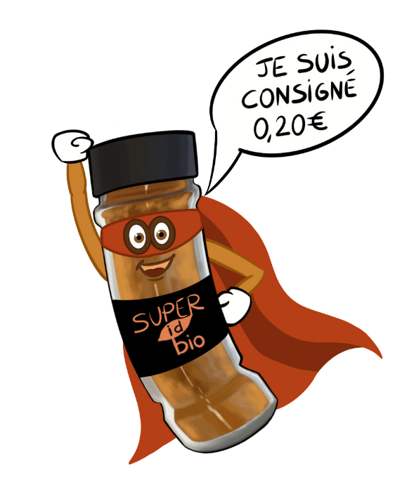 Et d'ID BIO notre fournisseur d'épices, riz basmati, pâtés végétaux, et autres condiments qui récupère les pots d'épices en verre propres avec les bouchons et les réutilise également.